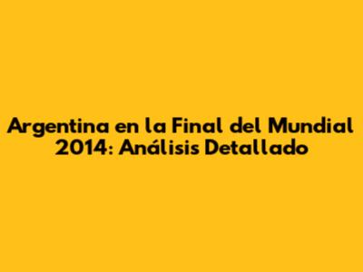 Argentina En La Final Del Mundial 2014: Análisis Detallado
