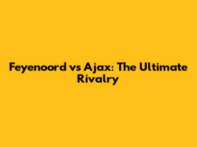 Feyenoord Vs Ajax: The Ultimate Rivalry