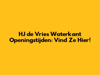 HJ De Vries Waterkant Openingstijden: Vind Ze Hier!