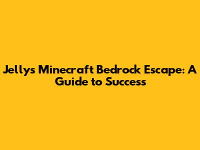 Jelly's Minecraft Bedrock Escape: A Guide To Success