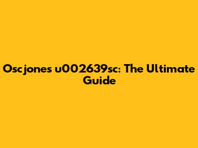 Oscjones U002639sc: The Ultimate Guide