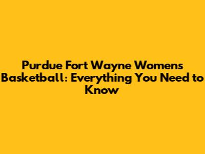 Purdue Fort Wayne Women's Basketball: Everything You Need To Know